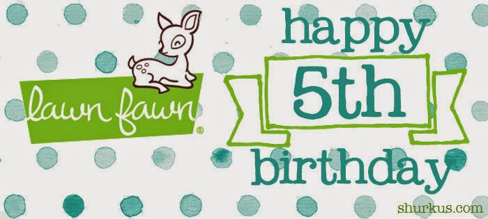 As a shout out to Lawn Fawn and to wish them a happy 5th birthday, a bunch of us joined together to create cards in their honor with a blog hop! You should have arrived from Suzanne's blog. If you have any trouble, or would like to see all the participants, please visit Jenn Shurkus' blog. :)